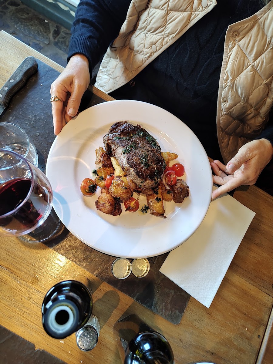 Wonderful place for lunch in Colonia. Set in the grounds of the hotel, excellent food and service. Both the ribeye and the lamb chop were execellent. The steak was washed down with a lovely Tennat Reserva. Staff friendly and helpful. Would suggest booking, but we didn't and got a table after a short wait around 1pm (early for many). Would definitely recommend.